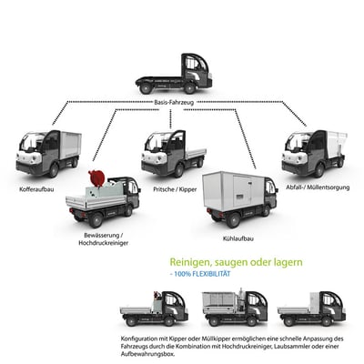 Reichweite bis zu 100km - Eine Tonne Zuladung - Lithiumtechnologie - 50 km/h - 1,50 m breit
